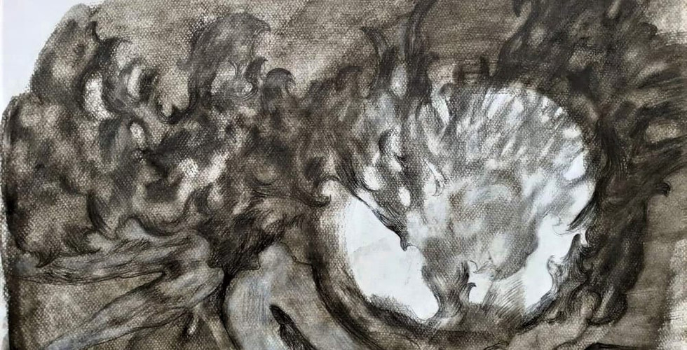Give a blank, generally white surface some life before beginning to sketch on it, like I recently did. You can make it more appealing, exciting, and inspiring for you by applying a thin layer of fine art charcoal to the paper and then gently rubbing your fingers, brushes, pieces of cloth, or any other tool you can think of over the surface. You can also use a kneaded eraser on occasion.